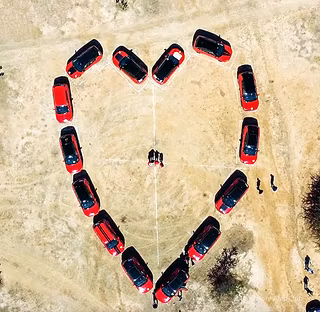 55 Jeepers from Banglaore Jeep Club went for a Valentines’s Day trip, this was no doubt one of the largest number of Jeeps in a single event, the planning required at least 4 recces of the place, markings on the ground so that Jeeps do not take much time while forming a Big Heart on the ground with their Jeeps. A number of Red Jeeps were specifically called in for creating the Big Heart Formation in Red on the ground.